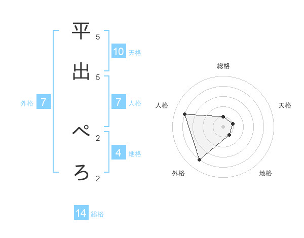 平出 ぺろさんの外格は7画の4点!
