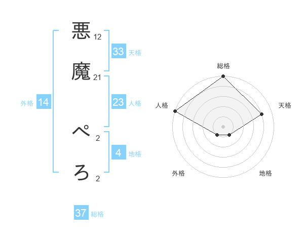 悪魔 ぺろさんの総格は37画の5点!