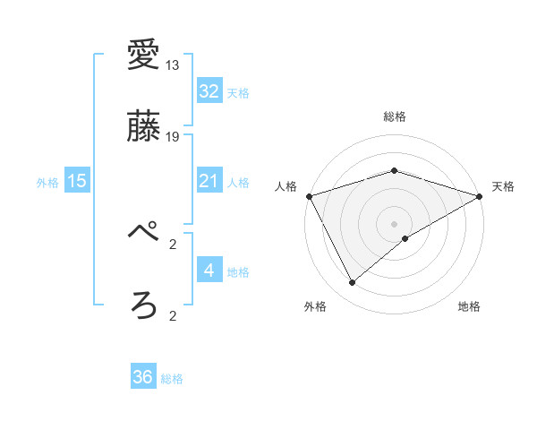 愛藤 ぺろさんの天格は32画の5点!