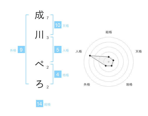 成川 ぺろさんの天格は10画の1点!