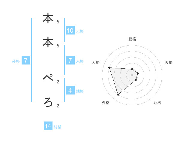 本本 ぺろさんを姓名の画数から五運を鑑定