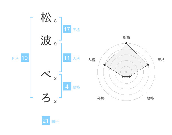 松波 ぺろさんの天格は17画の4点!
