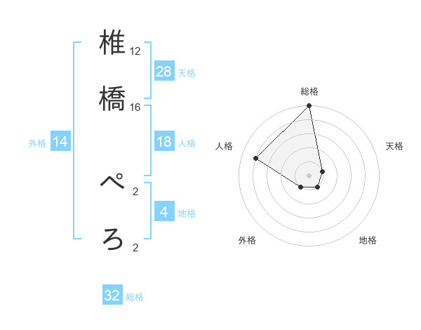 椎橋 ぺろさんの総格は32画の5点!