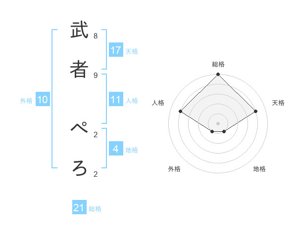 武者 ぺろさんの天格は17画の4点!