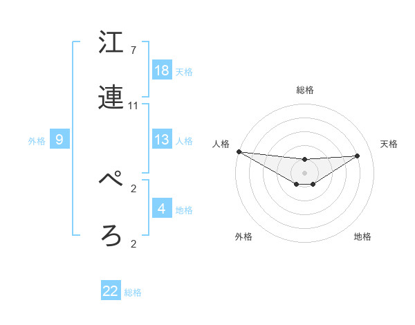 江連 ぺろさんを姓名の画数から五運を鑑定