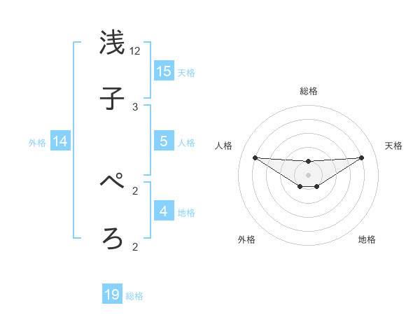 浅子 ぺろさんの天格は15画の4点!