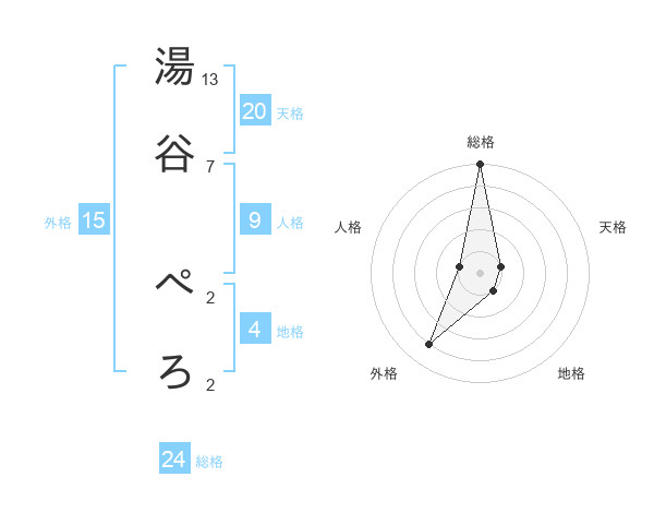 湯谷 ぺろさんの総格は24画の5点!
