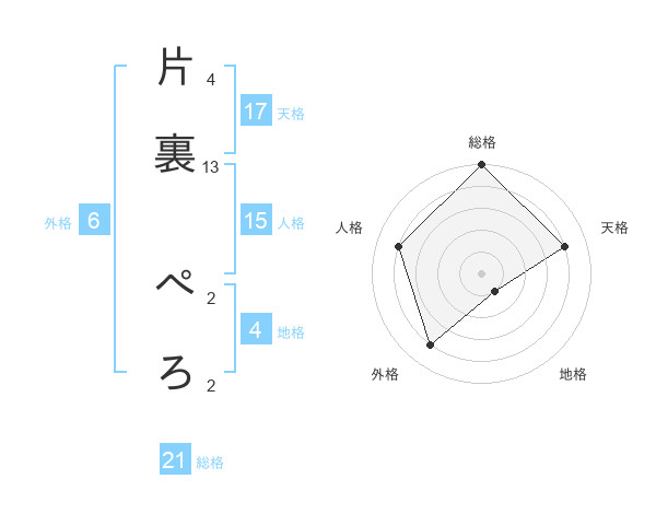 片裏 ぺろさんを姓名の画数から五運を鑑定