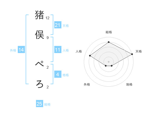 猪俣 ぺろさんの天格は21画の5点!