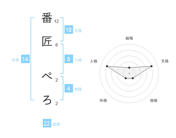 番匠 ぺろさんを姓名の画数から五運を鑑定