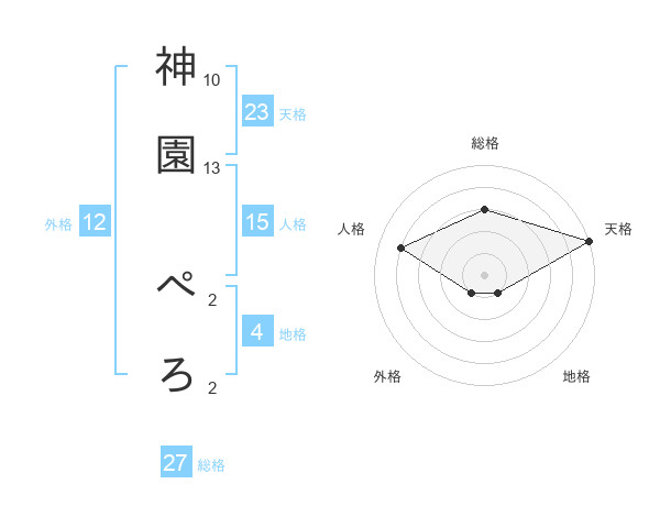 神園 ぺろさんの総格は27画の3点!