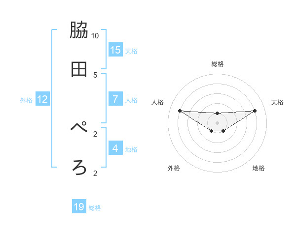 脇田 ぺろさんの天格は15画の4点!