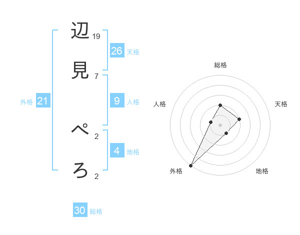 辺見 ぺろさんの外格は21画の5点!