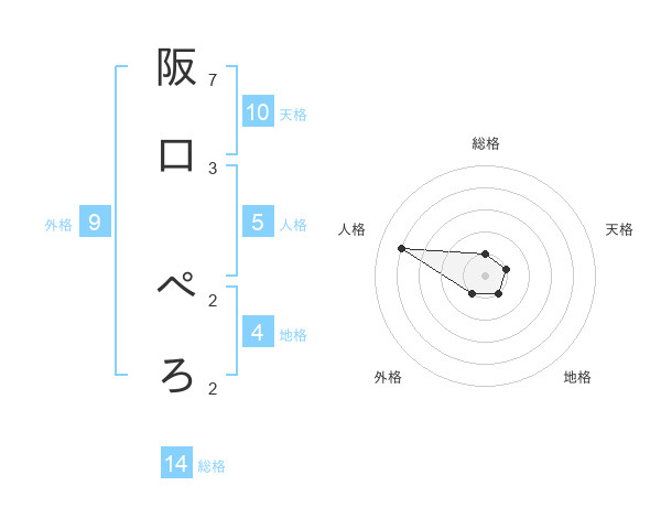 阪口 ぺろさんの総格は14画の1点!