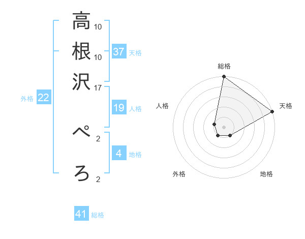 高根沢 ぺろさんの総格は41画の5点!