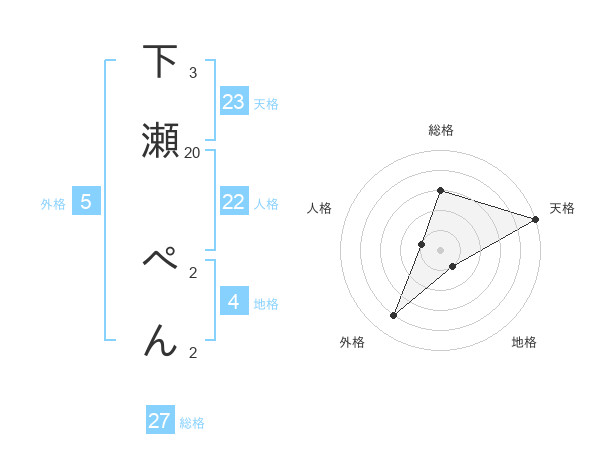 下瀬 ぺんさんの総格は27画の3点!