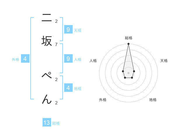二坂 ぺんさんを姓名の画数から五運を鑑定