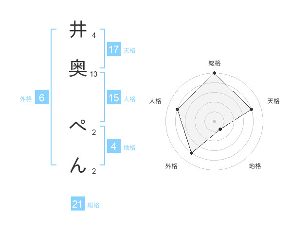 井奥 ぺんさんの天格は17画の4点!