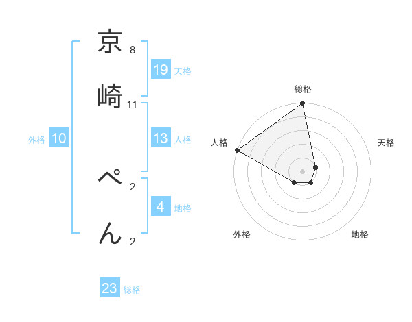 京崎 ぺんさんの総格は23画の5点!