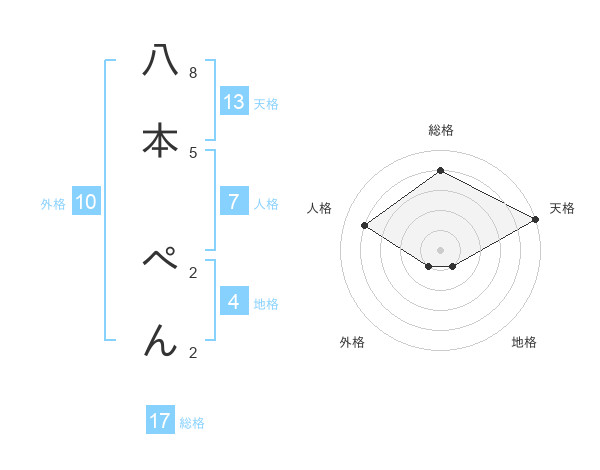 八本 ぺんさんを姓名の画数から五運を鑑定