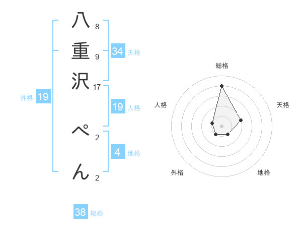 八重沢 ぺんさんの総格は38画の4点!