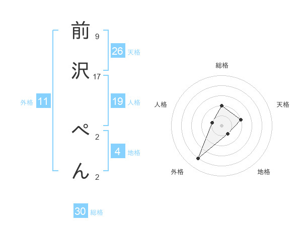 前沢 ぺんさんの天格は26画の2点!