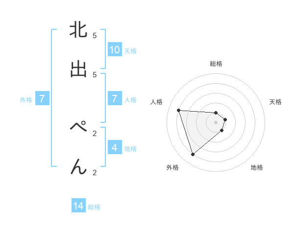 北出 ぺんさんの外格は7画の4点!