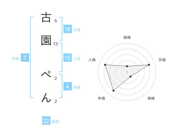 古園 ぺんさんの総格は22画の1点!
