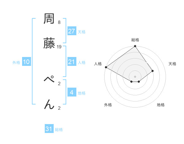 周藤 ぺんさんの総格は31画の5点!