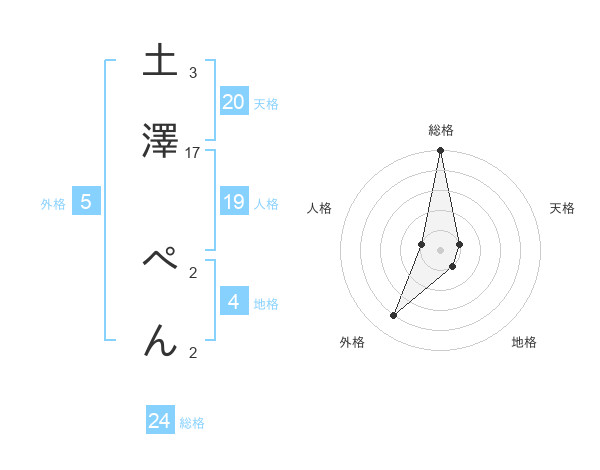 土澤 ぺんさんを姓名の画数から五運を鑑定