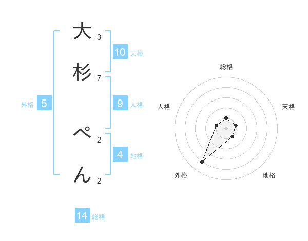 大杉 ぺんさんの総格は14画の1点!