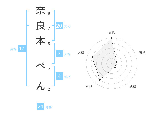 奈良本 ぺんさんの総格は24画の5点!