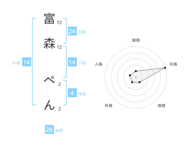 富森 ぺんさんの天格は24画の5点!