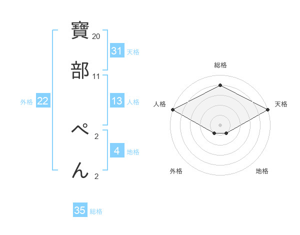 寶部 ぺんさんの総格は35画の4点!