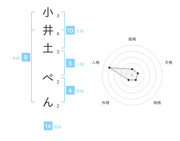 小井土 ぺんさんを姓名の画数から五運を鑑定
