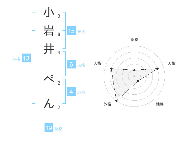 小岩井 ぺんさんを姓名の画数から五運を鑑定