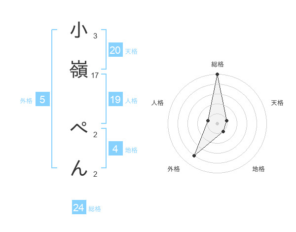 小嶺 ぺんさんを姓名の画数から五運を鑑定