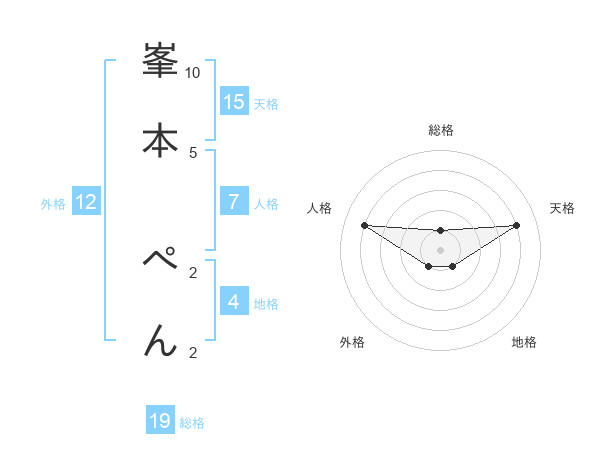 峯本 ぺんさんを姓名の画数から五運を鑑定