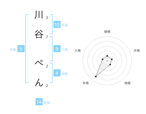 川谷 ぺんさんを姓名の画数から五運を鑑定
