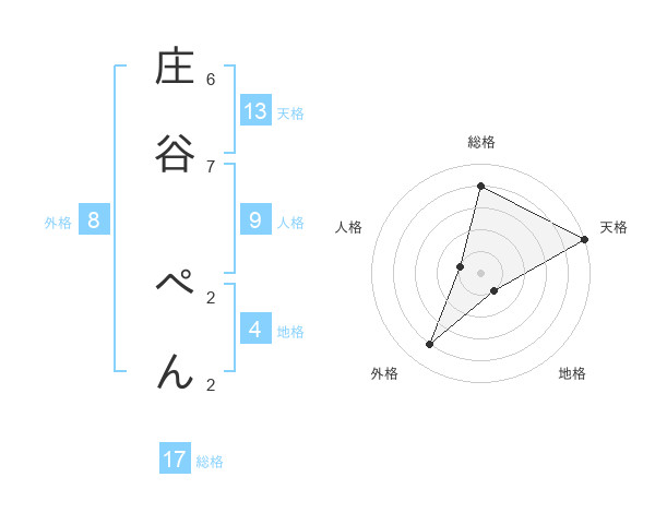 庄谷 ぺんさんを姓名の画数から五運を鑑定