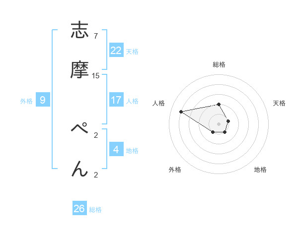 志摩 ぺんさんの総格は26画の2点!