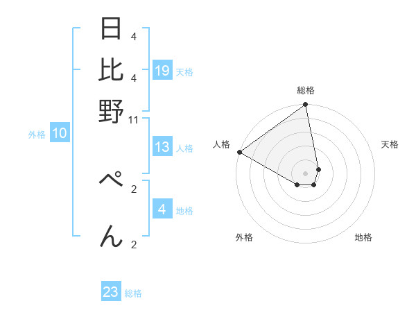 日比野 ぺんさんを姓名の画数から五運を鑑定