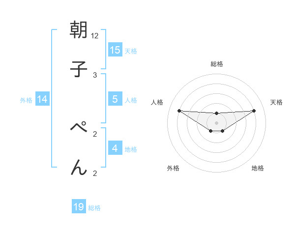 朝子 ぺんさんの天格は15画の4点!