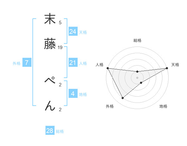 末藤 ぺんさんの天格は24画の5点!