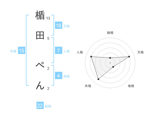 楯田 ぺんさんを姓名の画数から五運を鑑定