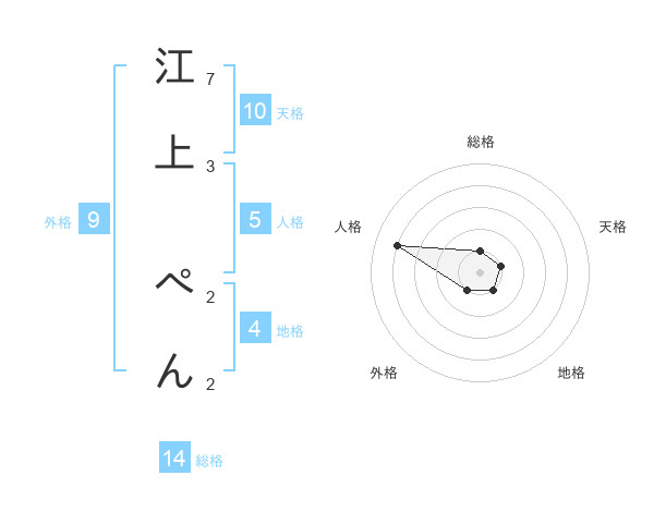 江上 ぺんさんの総格は14画の1点!