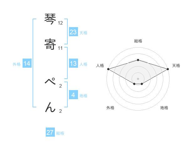 琴寄 ぺんさんの総格は27画の3点!