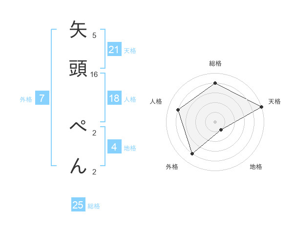 矢頭 ぺんさんを姓名の画数から五運を鑑定