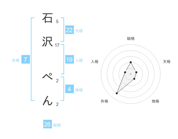 石沢 ぺんさんを姓名の画数から五運を鑑定