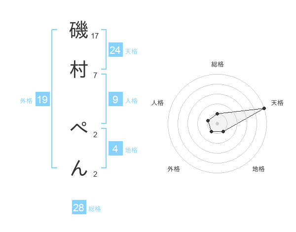 磯村 ぺんさんの天格は24画の5点!